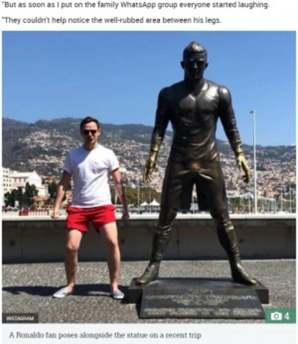 クリスティアーノ・ロナウドの像 写真をとって、Twitterにアップなんかしていると、フォロワーの方からリプライが来ました 「あそこがもっこりしてるw」 と。 確かにそう言われてみれば、 もっこりしてるな(笑) なんでこんなにもっこりしている ロナウド銅像 うーん似てる? ロナウドの銅像は空港にロナウドミュージアムにあります。 似てるのか、似てないのか、誰なのか。 上野公園の西郷さんのが似てそう びっくりした!なんて 母のドロレス・アヴェイロ( Dolores Aveiro )さんは、「ロナウドが故郷を忘れることは絶対ないの」とコメントしている。 34メートルの銅像は